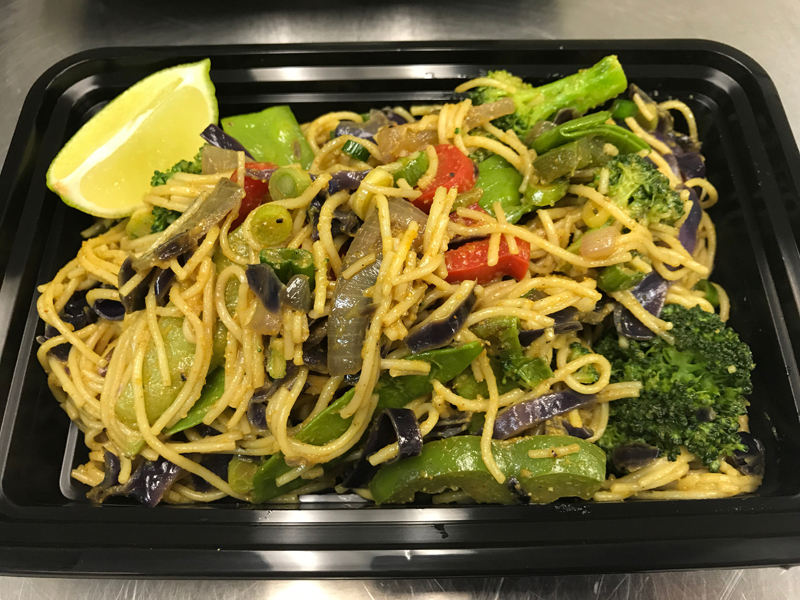 Seasonal vegetables in a Thai green curry sauce. Vegan with the option to add chicken or shrimp. Gluten-free.