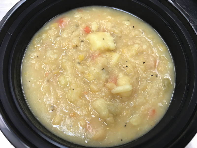 West African Peanut Soup with sweet potatoes, tomatoes, onions, garlic, ginger, jalapenos, kale, peanuts, peanut butter, herbs, and spices. Vegan with the option to add chicken. Gluten-free.